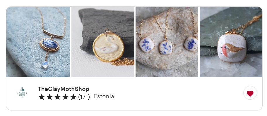 The Clay Moth Shop clarissa Posted in Star Sellers Share: XFacebookPinterestLinkedin The Clay Moth Shop’s creations are inspired by the wonders of northern nature. You’ll find a beautiful and unique selection of handcrafted ceramic jewelry matched with gold and silver. Author: clarissa